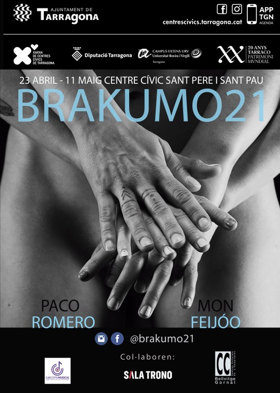 A partir de demà divendres 23 d'abril es podrà veure l'exposició Brakumo21 al Centre Cívic de Sant Pere i Sant Pau. Aquesta mostra que engega amb motiu de la Diada de Sant Jordi, ofereix una col·lecció de fotografies de les abraçades que, un any després de l'inici de la Covid19, ens van ser prohibides. Brakumo, que significa abraçada en esperanto, posa de relleu les abraçades en plena crisi sanitària com a mostra d'afecte, a la fragilitat del cos, independentment del gènere, edat o raça i a la necessitat de contacte que en tenim.