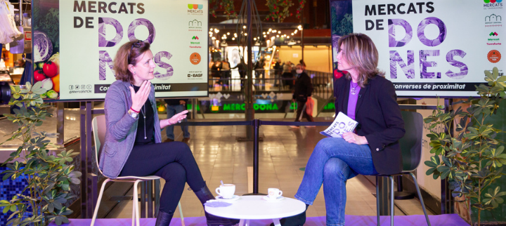 Sara Sans conversa amb dones vinculades als mercats de la ciutat.