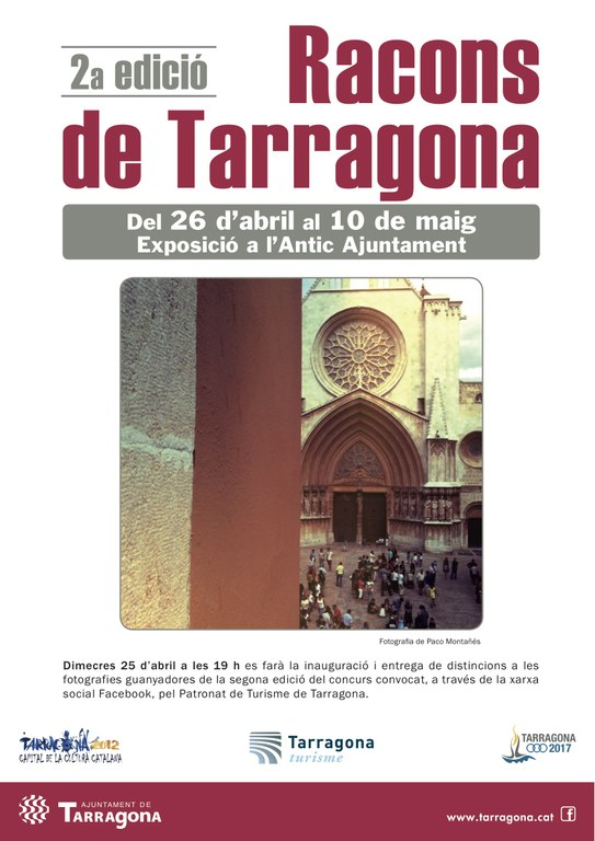 La regidora de Comerç i Turisme, Patrícia Anton, inaugurarà aquest dimecres, a les 7 de la tarda, a l’Antic Ajuntament, l’exposició que recull les millors imatges de la segona edició del concurs fotogràfic ‘Racons de Tarragona’. La mostra, que s’ha convocat a través de les xarxes socials Facebook i Twitter del Patronat Municipal de Turisme de Tarragona, ha suposat un nou èxit de participació amb més de cent fotografies rebudes de tarragonins i turistes que han visitat la ciutat.