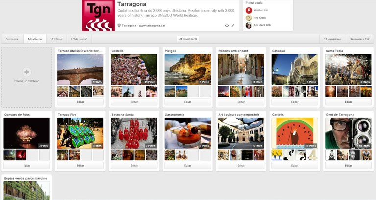 A partir d’avui ja es podrà trobar el perfil oficial de Tarragona a Pinterest, sota el nom de la ciutat i es caracteritzarà per tenir carpetes de diferents temàtiques; monuments mil•lenaris, paratges meravellosos i tradicions úniques.