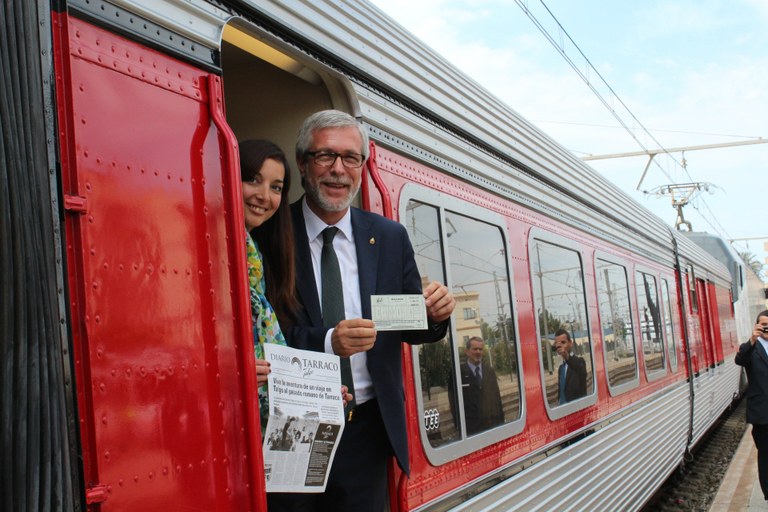 Avui, l’alcalde de Tarragona Josep Fèlix Ballesteros; la directora del Museu del Ferrocarril, Pilar García; el director gerent de Renfe Viajeros, Rodrigo Hilario; i el gerent del corredor nordest-mediterrani, Félix Martín; han presentat i inaugurat el Tarraco Talgo: un tren històric recuperat tal com era als anys 70, i que oferirà la possibilitat de fer una escapada des de Barcelona a Tarragona, tots els dissabtes del 31 de maig al 4 d’octubre.