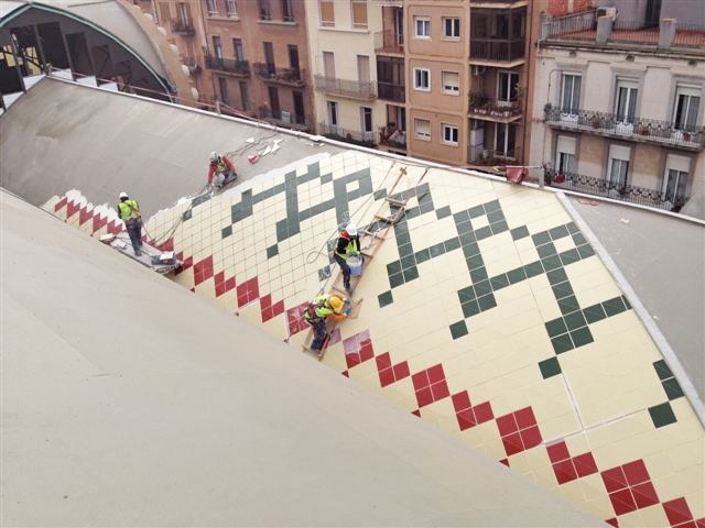 Instal·len el revestiment de la coberta del nou Mercat Central