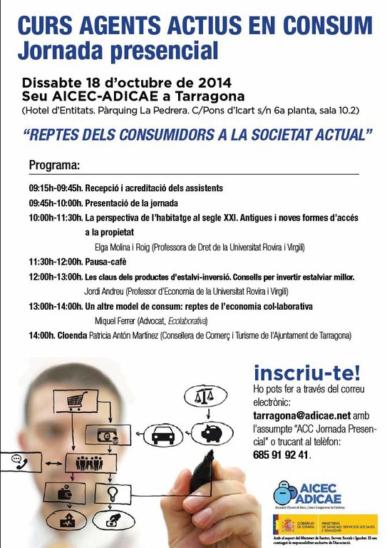 Per a assistir-hi cal confirmar assistència a tarragona@adicae.net o al telèfon 685 919 241