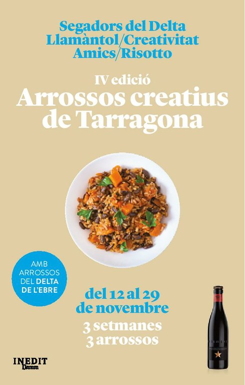 Amb el títol “Arrossos creatius: tres setmanes, tres arrossos”, la consellera de Turisme de l’Ajuntament, Begoña Floria, i el representant del col·lectiu Art i responsable del restaurant Cócvla, Carlos Segarra, han presentat les IV Jornades de l’Arròs que es faran entre el 12 i el 29 de novembre a 11 restaurants i un pub de la ciutat i que són els següents: Cócvla, Degvsta, DeVins, El Terrat, Mare Nostrum, Toca Peron, Braseria Passadís, Xamfrà del Fòrum, Txar3verd, Punt i a part, 5 sentits i Totem Cafè, que presentarà una gamma de licors d’Arrossaires del Delta.
