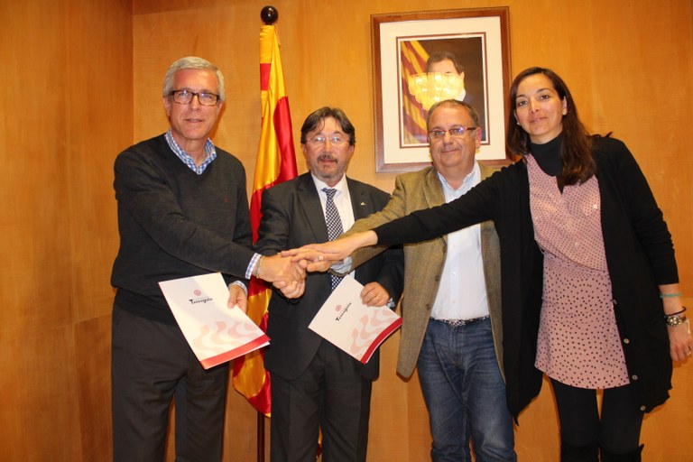 El president de l’Empresa Municipal de Mitjans de Comunicació, Pere Valls i el president de PIMEC Comerç Tarragona, Florenci Nieto, van signar ahir al matí, davant de l’alcalde de Tarragona, un conveni amb l’objectiu de difondre continguts informatius a través d’un espai setmanal al programa El Matí de Tarragona Ràdio.