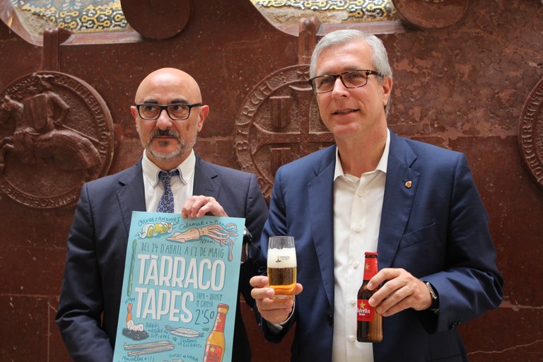 El director comercial d’Estrella Damm a Tarragona, Josep Lluís Castro, ha presentat aquest matí a l’alcalde de Tarragona, Josep Fèlix Ballesteros, la nova edició de la ruta Tàrraco Tapes que Tarragona acollirà entre el 14 d'abril i l'1 de maig. Seran 51 tapes creatives i 7 menús de tapes. En total participen 58 dels millors establiments de la ciutat. Com ja va succeir en edicions anteriors, es podrà gaudir de la ruta en dues modalitats: tapa i quinto o canya d’Estrella Damm per només 2,5 €, o bé menú de tapes acompanyat d'una ampolla de 66 cl d'Estrella Damm, a un preu únic de 30 €.