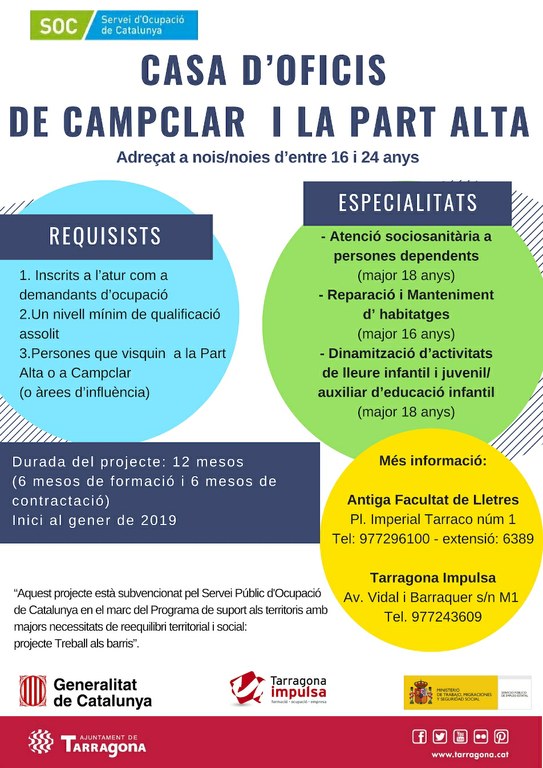 Les persones interessades a optar a aquest programa han de tenir entre 16 i 24 anys, han d’estar inscrites a l'atur com a demandants d'ocupació en el moment de la sol·licitud i han de viure a la Part Alta o Campclar (o àrees d'influència).