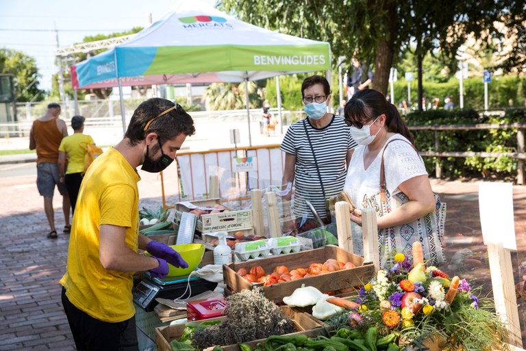 El nou Mercat de la Pagesia de la Plaça dels Carros ja és una realitat. Cinc parades de diferents productors de fruita, verdura i espècies de producció pròpia han participat aquest dissabte en la primera jornada d’aquest mercat de productes de venda directa, el qual pretén fomentar i consolidar la importància dels productes locals, afavorir la seva comercialització i ajudar al desenvolupament comercial de l’entorn i dels petits productors.