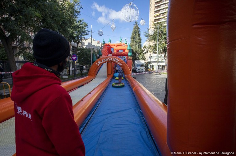 Per altra banda, una de les activitats que ha tingut més bona acollida de la campanya de dinamització comercial de Nadal és el tobogan inflable de 40 metres instal·lat aquest cap de setmana a diferents punts de la ciutat. Els nens i nenes i, fins i tot, molts pares i mares de Sant Pere i Sant Pau, Torreforta, la Part Baixa o l’Eixample de Tarragona van gaudir aquest passat cap de setmana del tobogan gegant de 40 metres, que simulava un de gel. Tant és així que va registrar 9.000 baixades. Una activitat familiar que només va patir un contratemps, el vent que va impedir la seva instal·lació a la Vall de l’Arrabassada i que el va traslladar al recinte Firal perquè cap infant es quedés sense gaudir d’aquesta atracció.