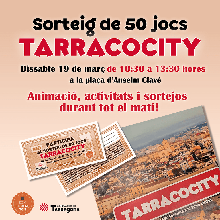 La conselleria de Comerç de l’Ajuntament de Tarragona organitza aquest dissabte 19 de març, de les 10:30 fins a les 13:30 h, una jornada festiva al carrer Cronista Sessé. Durant el transcurs del matí, es farà el sorteig de 50 jocs de Tarracocity. El conseller de comerç, Dídac Nadal, ha destacat que “el dissabte tornarem a organitzar una gran festa amb l’objectiu d'omplir de vida la ciutat per tal d’estimular el sector del comerç”.