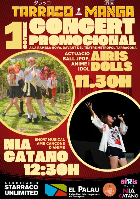 Airis Dolls és actualment un dels grups de balls japonesos i anime més reconeguts de Catalunya, un fenomen creixent, especialment entre els més joves. L'actuació a Tarragona comptarà amb set ballarines de cançons J-pop, anime i ídol. Unes actuacions atractives visualment pel seu característic cosplay. I Nia Catano és cantant de cançons anime que ella mateixa arranja i tradueix al català per uns directes caracteritzats per la interactuació amb el públic i els jocs que realitza.