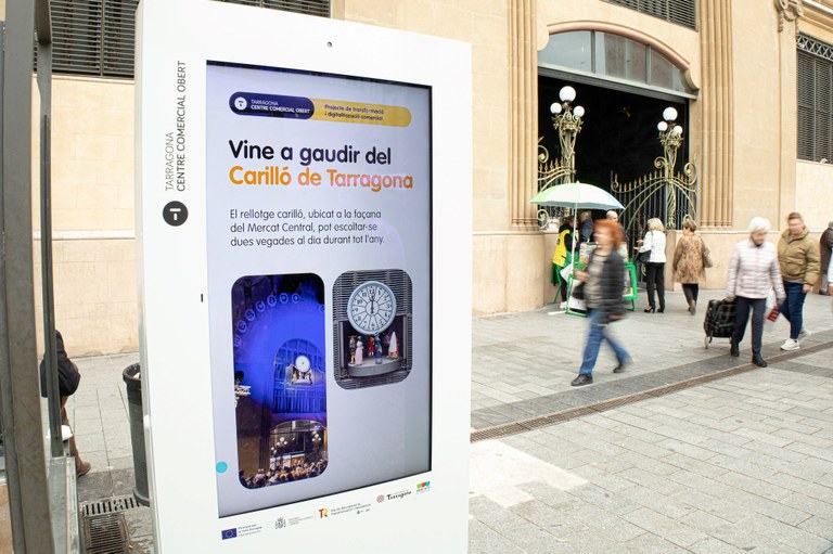 Des d’aquest mes de febrer diversos espais comercials de la ciutat compten amb nous elements de cartelleria digital. Es tracta d’un total d’onze tòtems interactius que ja es troben en funcionament i que formen part del projecte Tarragona Centre Comercial Obert, finançat per la Unió Europea amb fons Next GenerationEU.