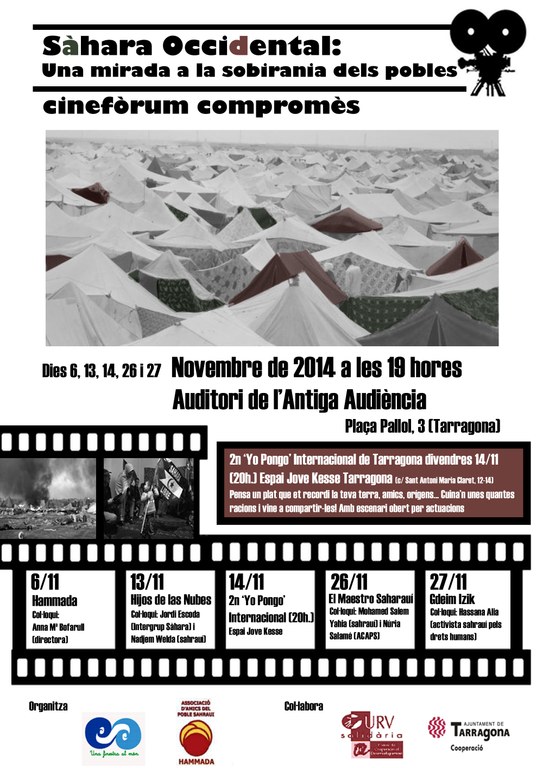 El projecte tarragoní Una Finestra al Món i l’ONGD Hammada organitza el cicle de cinefòrum compromès "Sàhara Occidental: Una mirada a la sobirania dels pobles" que tractarà la problemàtica internacional del Sàhara Occidental. Aquesta proposta comptarà amb el visionat de quatre documentals i es debatrà sobre els diversos aspectes, les causes del conflicte i la situació històrica del poble sahrauí.