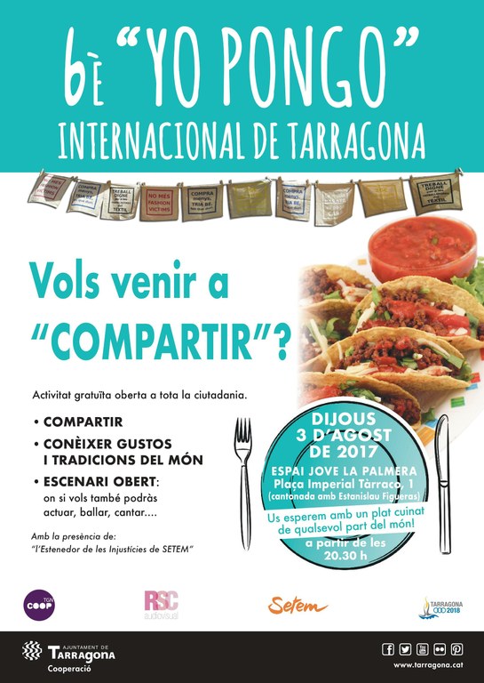 El Departament de Cooperació organitza el proper dijous 3 d'agost una activitat gastronòmica gratuïta i oberta a tota la ciutadania, el 6è "Yo Pongo" Internacional de Tarragona.