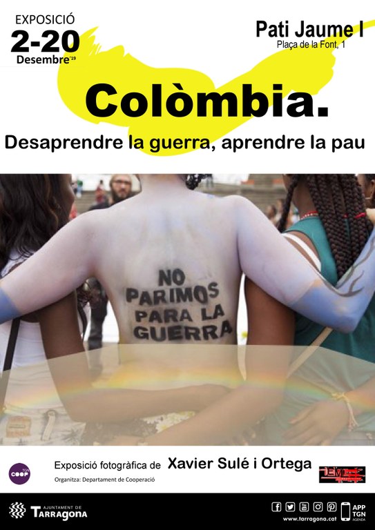 L’exposició “Colòmbia. Desaprendre la guerra, aprendre la pau” permet descobrir el conflicte armat d'aquest país d'Amèrica Llatina a través de les fotografies de Javier Sulé. La mostra, inclosa a la programació de tardor de la Conselleria de Cooperació de l'Ajuntament de Tarragona, es pot veure al Pati de Jaume I fins al 22 de desembre.