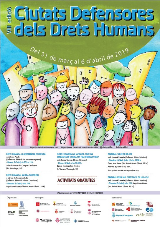 Del 2 al 5 d’abril visitaran Tarragona quatre defensors i defensores de drets humans en el marc del projecte de Ciutats Defensores de Drets Humans, al qual s’ha adherit el Departament de Cooperació dins de la programació de primavera. Els defensors i defensores provinents del Sàhara Occidental, Perú, El Salvador i Colòmbia realitzaran un conjunt de xerrades i tallers gratuïts per donar a conèixer quina és la seva tasca i les lluites que afronten en els seus respectius països.