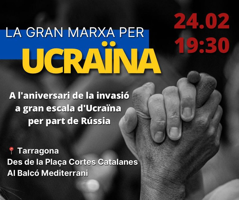 A la tarda, l’Ajuntament se sumarà a la concentració convocada per Amnistia Internacional Tarragona per a denunciar la invasió i demanar a Rússia la fi d’aquesta. La concentració, en la qual hi participaran totes les associacions d’ucraïnesos a Tarragona i es llegirà un manifest, serà a les 18.30 h a l’Estàtua dels Despullats. Posteriorment, a les 19.30 h, sortirà una marxa des de la plaça de les Corts Catalanes fins al Balcó del Mediterrani.
