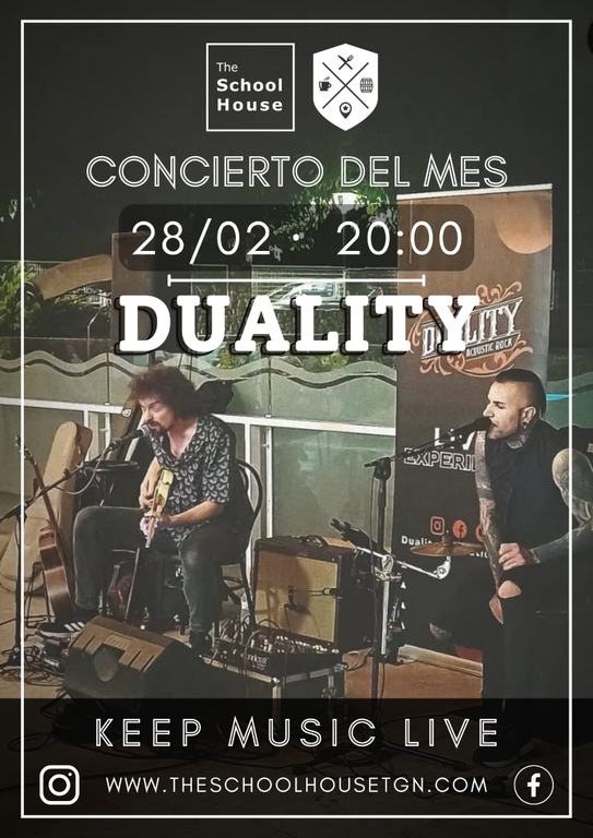 Repetim amb el grup Duality format per Javi Ssagittar i Miguel Zanon, amb versions de clàssics de rock i blues. Una de les millors experiències que s'ofereix a The School House, poder gaudir d'un deliciós sopar amb música en directe.