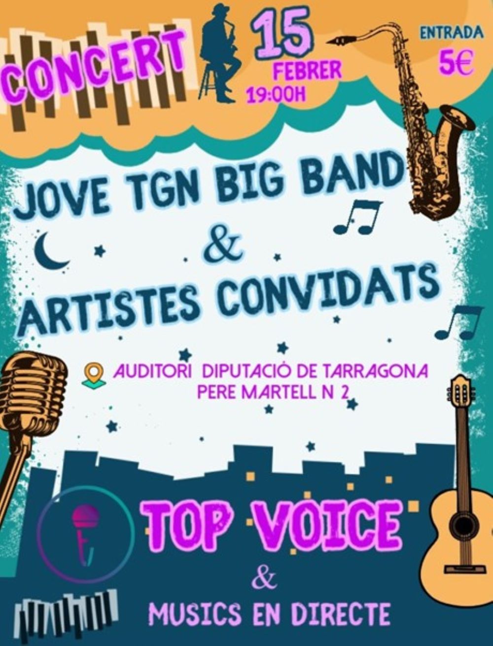 Rambla Music presenta un doble concert amb la Jove TGN Big Band i veus convidades de Rakel acadèmia de cant i una segona part amb el cor modern Top Voice amb músics en directe.
