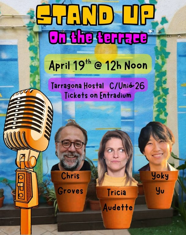 L'estiu arriba amb molta calor i nosaltres també amb la primera edició de monòlegs d'humor en anglès a la terrassa. Un diumenge de festa mai havia semblat tan bo! Uniu-vos a nosaltres a la terrassa de Tarragona Hostal per a un espectacle diürn sota el sol: l'espectacle comença al migdia.