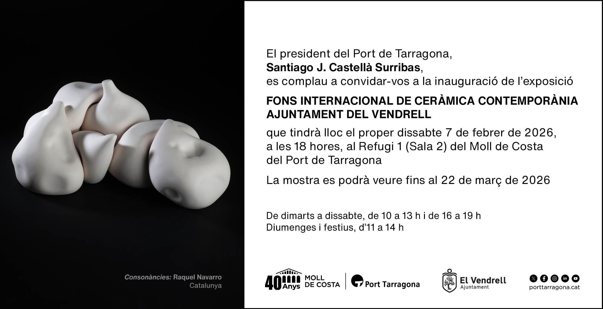 La inauguració tindrà lloc el proper dissabte 7 de febrer de 2026, a les 18 h.