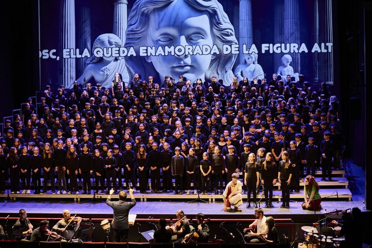 Un projecte pedagògic musical amb continguts i activitats patrimonials complementàries, en què més de set-cents alumnes de cursos de cicle mitjà i superior de primària de diverses escoles i centres de formació musical de la ciutat (Escola Municipal de Música de Tarragona, Escola i Conservatori de la Diputació a Tarragona, centre privat l’Estudi de Música), pujaran i cantaran a l’escenari del Teatre Tarragona, en dues sessions, acompanyats de músics, solistes i directors professionals, en una vivència musical inoblidable per a tothom.