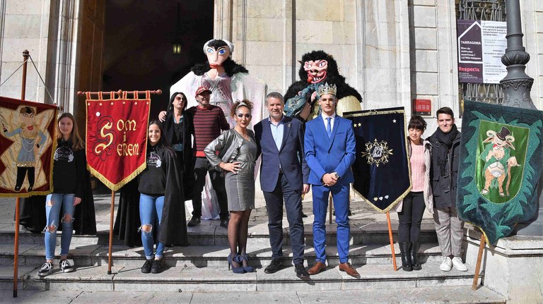 Aquest matí l’alcalde de Tarragona, Pau Ricomà, ha presentat la Bóta, el Ninot i la Ninota del Carnaval d’enguany, junt amb Pere Estadella i la Jordina Ros de l’Associació de Figures Festives, autors de les figures; així com el Rei i la Concubina, que els acompanyaven.