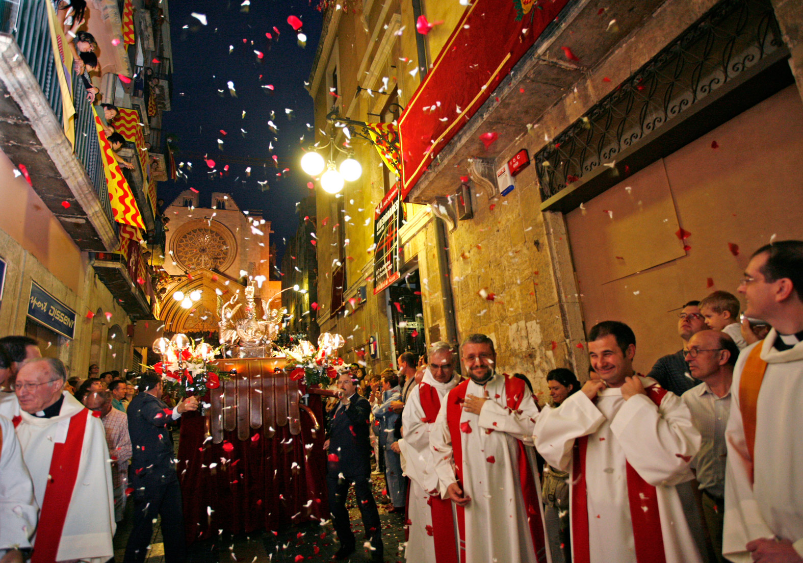El seguiment cronològic de la jornada ens condueix cap a la processó del vespre –dia 23–, una de les grans processons dels Països Catalans, de tot l’Estat i de tot Europa. Tota la festa, però en especial aquest moment, ens trasllada cap a una mesura sentimental de la ciutat que és impossible de copsar en cap altre moment de l’any, tant entre els mateixos tarragonins com entre els nombrosos visitants que hi assisteixen. Un cop la relíquia reposa dins el temple catedralici, fora el brogit és impressionant en un acte l’autoria del qual ningú no gosa atribuir-se, però que ha nascut amb la recuperació democràtica de la festa: la baixada esbojarrada cap a la plaça de la Font.