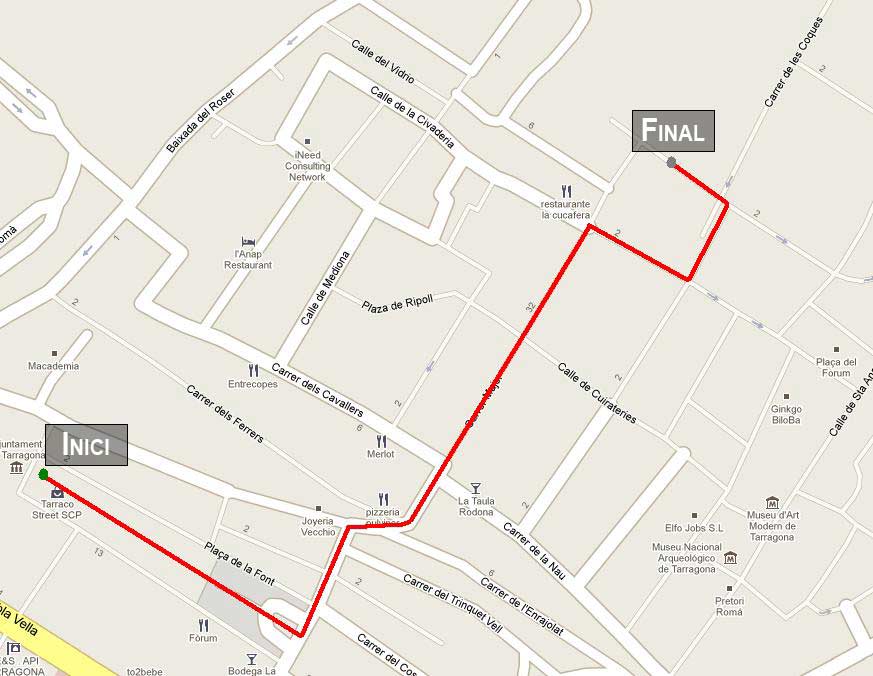 - Anada a ofici: plaça de la Font, baixada de la Misericòrdia, carrer Major, plaça de les Cols, carrer de la Merceria, carrer del Pare Iglésias i pla de la Seu.