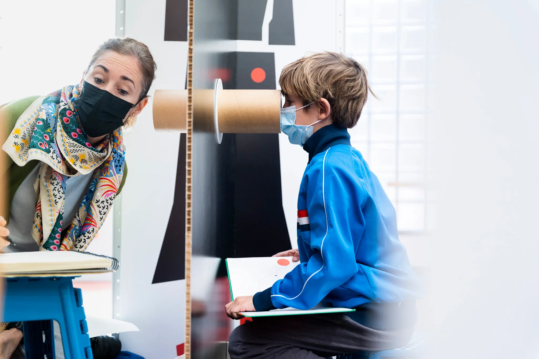 Joc creatiu entre dues persones: una llegeix i descriu les pàgines d'un llibre, l'altra la dibuixa segons la descripció.