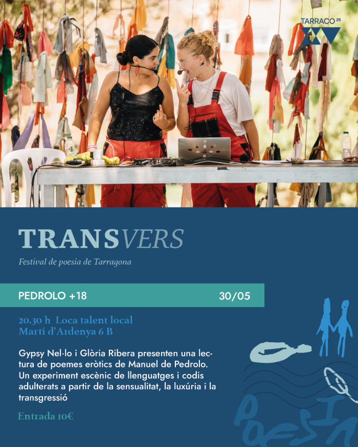 Gypsy Nel·lo i Glòria Ribera presenten una lectura de poemes eròtics de Manuel de Pedrolo. Un experiment escènic de llenguatges i codis adulterats a partir de la sensualitat, la luxúria i la transgressió.