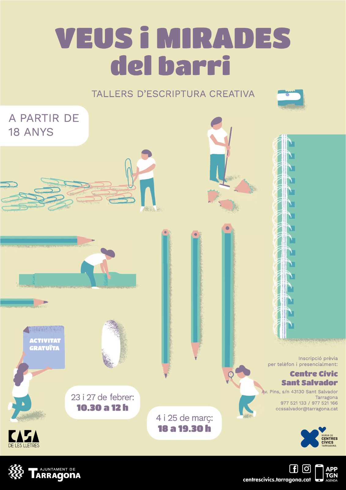 Inscripcions al mateix Centre Cívic Sant Salvador o per telèfon al 977 521 133 o al 977 521 166