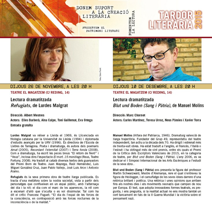 Aquesta és la segona de les lectures que es fa en el marc de la Tardor Literària 2015