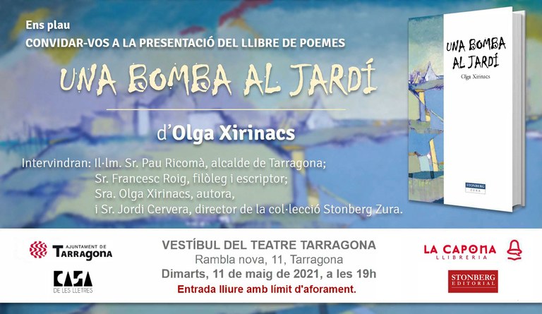 L’escriptora tarragonina Olga Xirinacs presenta el seu últim llibre de poemes, Una Bomba al Jardí, aquest dimarts 11 de maig a les 19 h al vestíbul del Teatre Tarragona, en el marc de la Primavera Literària.