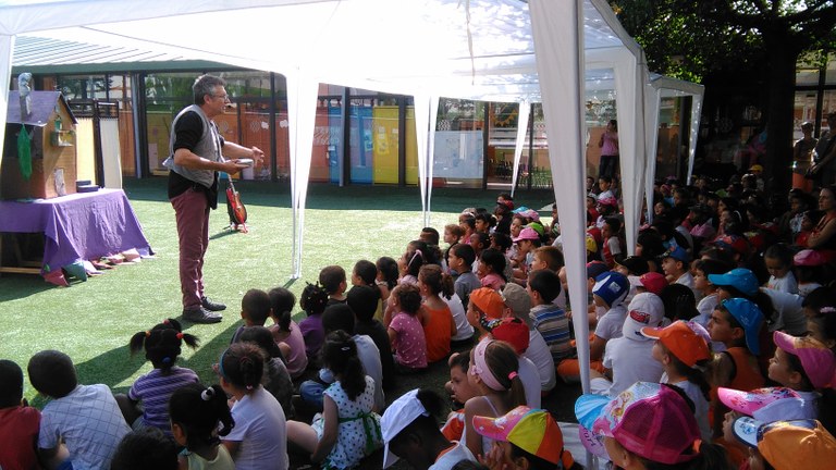 La Biblioteca Pública de Torreforta i Pla Educatiu d'Entorn de Tarragona, fa cinc anys que realitzen un projecte anomenat Lliga el conte i passa'l, on més de dotze centres educatius de la zona de Ponent de Tarragona, escoles, llars d'infants i entitats culturals, s’uneixen al llarg de tot l'any per treballar un mateix conte de maneres molt diverses. Avui i demà s’estan duent a terme les diferents activitats de final de curs a l’entorn d’aquest projecte, que enguany ha tingut com a protagonista el conte El monstre de colors, d’Anna Llenas. Tots junts, uns 500 alumnes, junt amb els mestres i personal de la biblioteca, han gaudit de la festa amb les històries del contacontes Agus Farré i un petit esmorzar amenitzat amb el so de la guitarra de L’Aleix Etc.