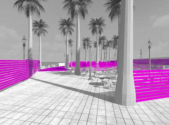 Asun Vidal proposa un disseny innovador que emmarqui el recinte amb unes cintes de colors que aniran lligades aprofitant els fanals del passeig, aconseguint, per una banda, limitar l’espai on transcorre el festival i, per altra, garantir les ombres necessàries per a comoditat del públic assistent.