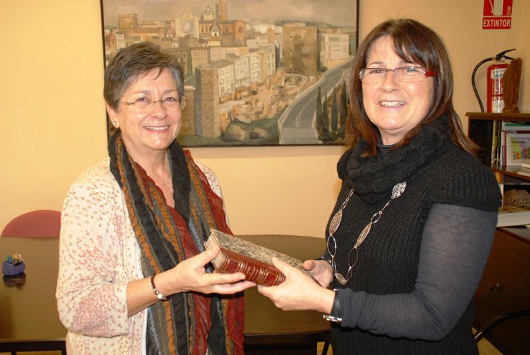 El ciutadà francès M.André Sabater lliura a l'Hemeroteca Municipal un exemplar del llibre 'Tarragone.Histore du consulat et de l'empire de l'any 1856'