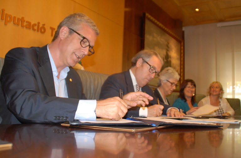 L’alcalde de Tarragona, Josep Fèlix Ballesteros, el president de la Diputació, Josep Poblet, i la presidenta d’Òmnium Cultural, Muriel Casals, han signat aquest migdia l’acord de col·laboració per a la celebració de la 62a Nit de Santa Llúcia, la festa de les lletres catalanes que anualment organitza Òmnium Cultural. L’acte se celebrarà al Teatre Tarragona el divendres 14 de desembre d’aquest any.