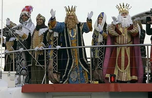 Ses Majestats els Reis Mags -Melcior, Gaspar i Baltasar-, arribaran al Serrallo/Moll de Pescadors per via marítima, des de terres de l’Orient. La seva arribada serà saludada per les sirenes dels vaixells i barques del Port, així com per les 21 salves pirotècniques adreçades a les grans personalitats. Els patges dels Mags també encendran bengales de colors per assenyalar la seva entrada a la ciutat.