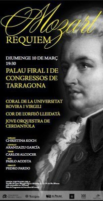 El proper diumenge 10 de març a les 19.30h a la sala Augusta del Palau Firal i de Congressos, la Coral de la Universitat Rovira i Virgili (URV), juntament amb el Cor de l’Orfeó Lleidatà, la Jove Orquestra de Cerdanyola i solistes de la Fundació Victòria dels Àngels, interpretaran la Missa Rèquiem en re menor K. 626 de W.A. Mozart.