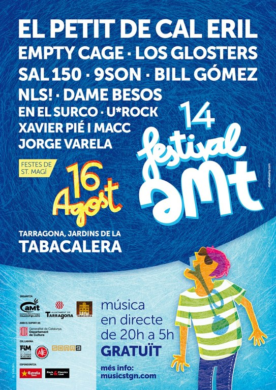 Com cada any, per les festes de Sant Magí, i organitzat conjuntament entre l’Ajuntament de Tarragona i l’Associació de Músics de Tarragona, el divendres 16 d’agost tindrà lloc el 14è Festival aMt al Jardí Vertical de la Tabacalera –davant de la seu de l’aMt a la Capsa de Música. Amb formacions consolidades i professionals, el propòsit del festival és compartir la seva música entre els músics tarragonins i el públic per trobar sinergies, així com també per proporcionar una jornada festiva i gratuïta de nou hores de música ininterrompudes sobre dos escenaris simultanis.