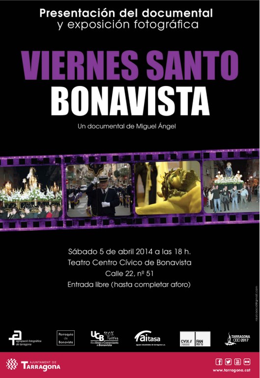 L’Ajuntament de Tarragona ha organitzat , amb la col·laboració de la parròquia de Bonavista , la Banda de Música, les Confraries del barri i amb el patrocini de Aitasa, la presentació i projecció d'un documental (realitzat per Miguel Ángel Navarro, empleat municipal) i d'una exposició fotogràfica sobre el “Viernes Santo en Bonavista” que s'inaugurarà el proper dia 5 d'abril a les 18 hores en el Teatre del Centre Cívic de Bonavista. (C/ 22, nº51).