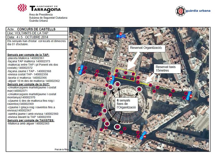 - En funció de l'aglomeració de públic i colles es pot tallar el trànsit als voltants de la TAP mentre duri el Concurs, tant el dissabte com el diumenge. En tot cas es garanteix l'accés dels veïns a les seves finques, aparcaments i guals.