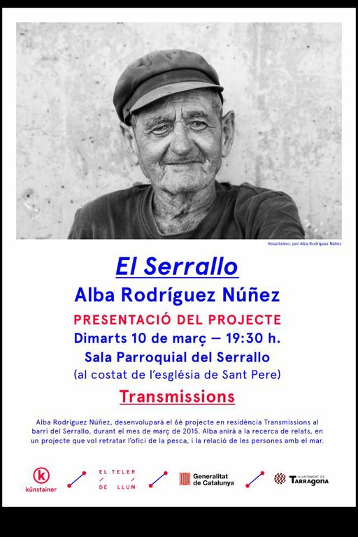 Aquest mes de març, a través del projecte Transmissions de Künstainer que engloba El Teler de Llum, arriba el torn de l’artista Alba Rodríguez, que instal·larà la seva residència al barri del Serrallo per tal de familiaritzar-se totalment amb la vida diària d’aquest barri i d’anar a la recerca de relats, en un projecte que vol retratar l’ofici de la pesca i la relació de les persones amb el mar.