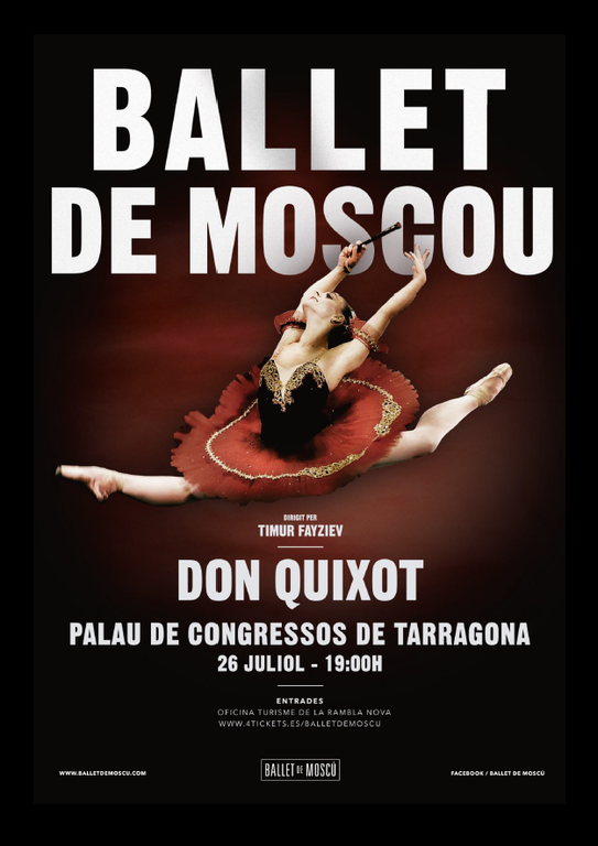 En la seva aposta per la cultura de qualitat i per la dansa, el Palau Firal i de Congressos de Tarragona acollirà el 26 de juliol a les 19 hores el ballet Don Quixot de la mà de la companyia del Ballet de Moscou. Després d’omplir l’Auditori August en les tres actuacions de l’obra El Llac dels Cignes, la companyia russa s’ha decidit per un ballet diferent i mai representat a la ciutat de Tarragona, una de les obres emblemàtiques de la història de la dansa teatral, El Quixot.