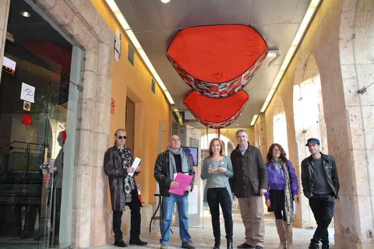 La consellera de Cultura de l’Ajuntament, Begoña Floria, i l’artista Àngel Pomerol han presentat aquest matí la intervenció “La plusvàlua està pels núvols”, que pot visitar-se als porxos de l’Antiga Audiència fins al 15 de febrer.