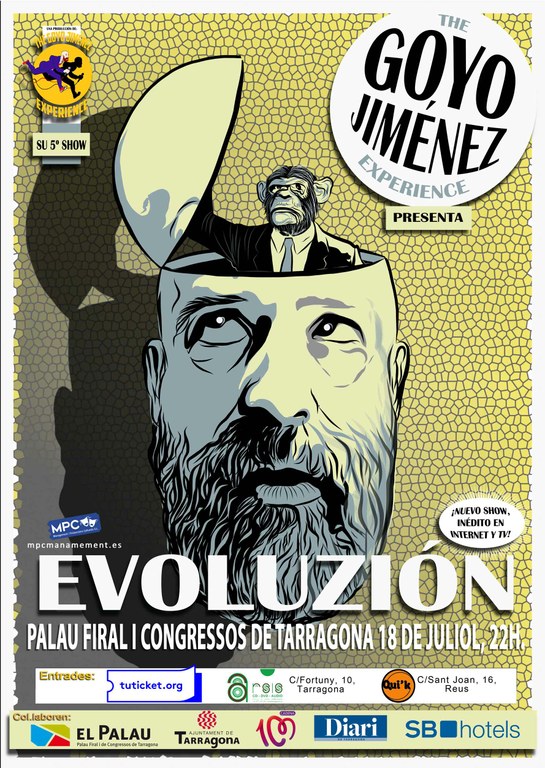 El polifacètic actor i humorista Goyo Jiménez actuarà el proper 18 de juliol, a les 22 hores, al Palau de Congressos amb el seu espectacle Evoluzión. Goyo Jiménez és un creador artístic conegut per col·laborar en diferents programes de televisió, però sobretot, gràcies a la seva faceta com a còmic o monologuista de stand up comedy i acumula una llarga trajectòria professional. Ha participat, entre d’altres, en el programa de televisió “El Club de la Comedia”, va col·laborar amb la companyia teatral La Fura dels Baus i com actor i guionista a la pel·lícula Torrente 4.