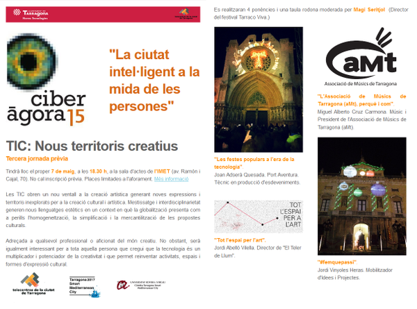 La jornada s’emmarca en la Ciberàgora 2015, organtizada per la Xarxa de Telecentres i Tarragona 2017 Smart Mediterranean City, que enguany ha organitzat tres jornades prèvies centrades en la salut, la igualtat i la creativitat.