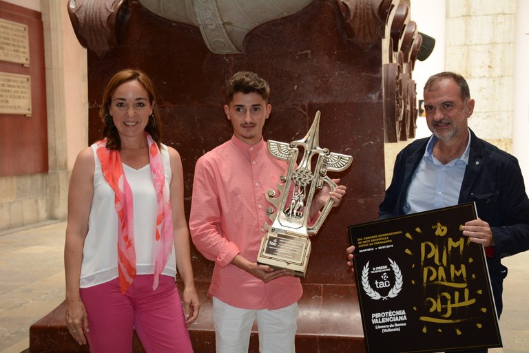 La consellera de Festes de l’Ajuntament, Begoña Floria i el director-gerent de Tac 12, Xavier Abelló, han lliurat aquest dimecres al matí el premi del públic del 26è Concurs Internacional de Focs Artificials Ciutat de Tarragona.