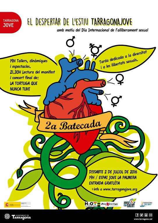 Aquesta festa és una iniciativa de JOVES PROMOTORS DE SALUT, ESPAI JOVE DE SALUT (Serveis Municipals de Joventut, i Prevenció de les Addiccions de l’Ajuntament de Tarragona), H20 i ASSEXORA’TGN. Aquest acte forma part del Programa d’Alternatives d’Oci i Consums amb el suport i finançament del Ministerio de Sanidad, Servicios Sociales e Igualdad.